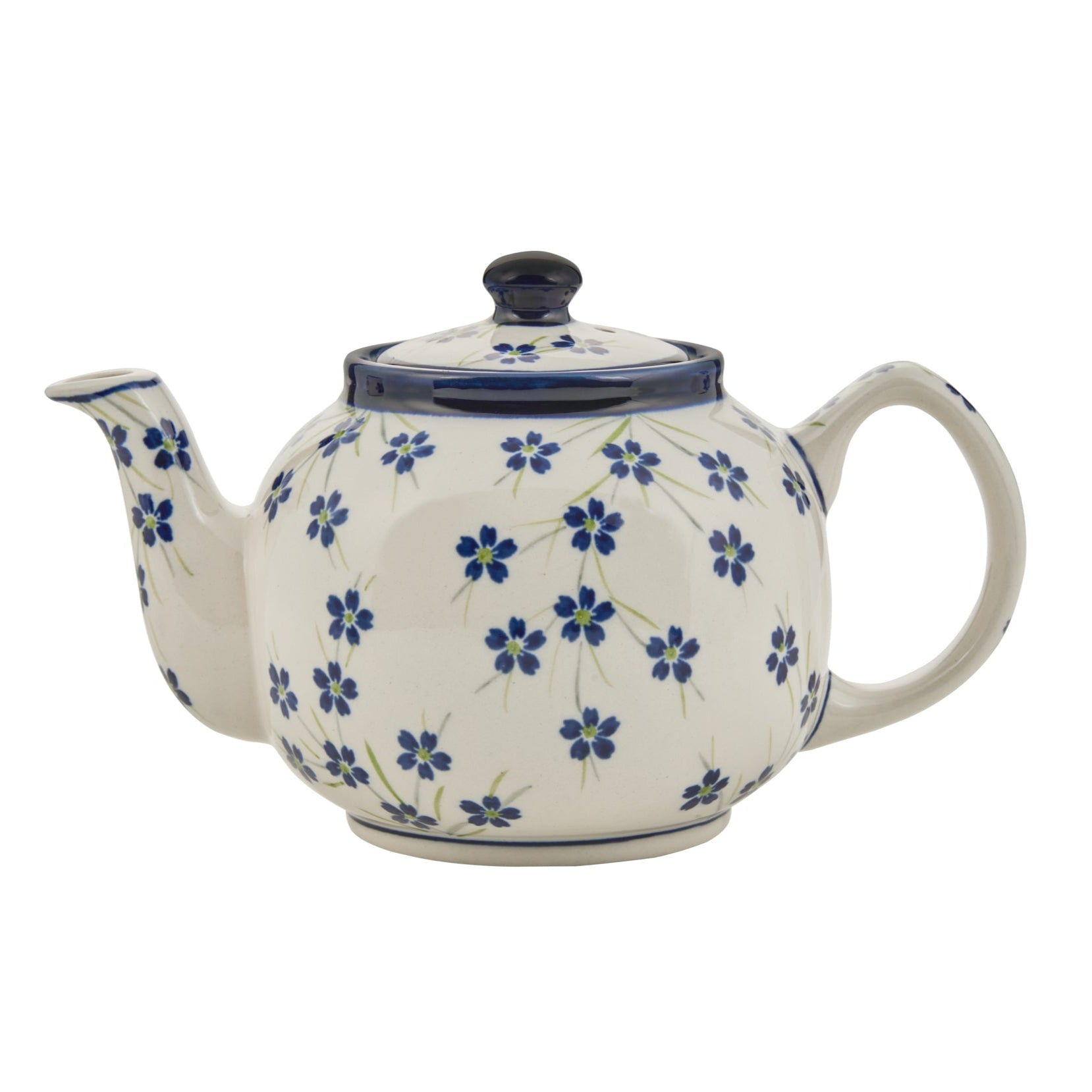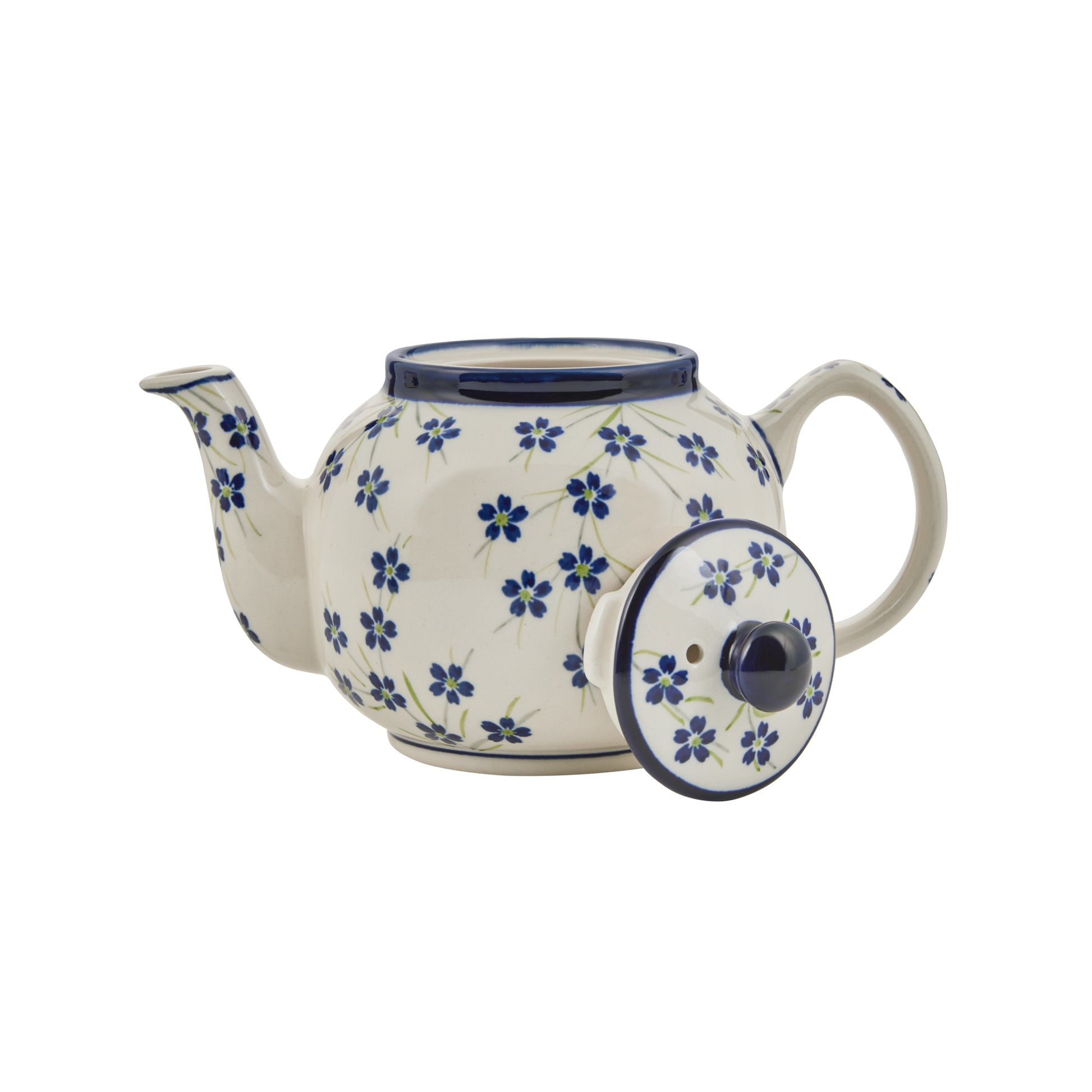 Handgefertigte Keramik-Teekanne – Bunzlauer Keramik | 1,0L | Landhausblumen | Spülmaschinenfest | Perfekt für Teeliebhaber